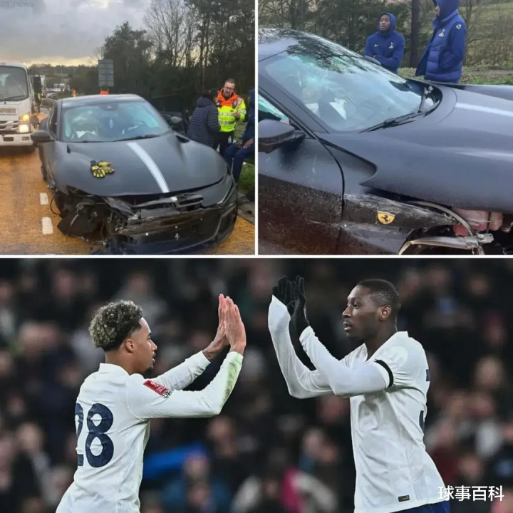 从媒体曝光的现场图片来看,穆阿尼和奥多贝尔站在路边,身旁是一辆撞毁的法拉利,车内安全气囊已经弹出,右前轮爆裂,轮毂脱落,同时车辆的轮拱和前格栅也受损。挡风玻璃也出现裂痕。交通摄像头显示,当紧急服务人员赶到现场时,两人和车辆都停靠在路肩紧急停车带。据了解,他们当时正前往斯坦斯特德机场与热刺大部队会合,准备飞往德国参加与法兰克福的欧冠比赛。