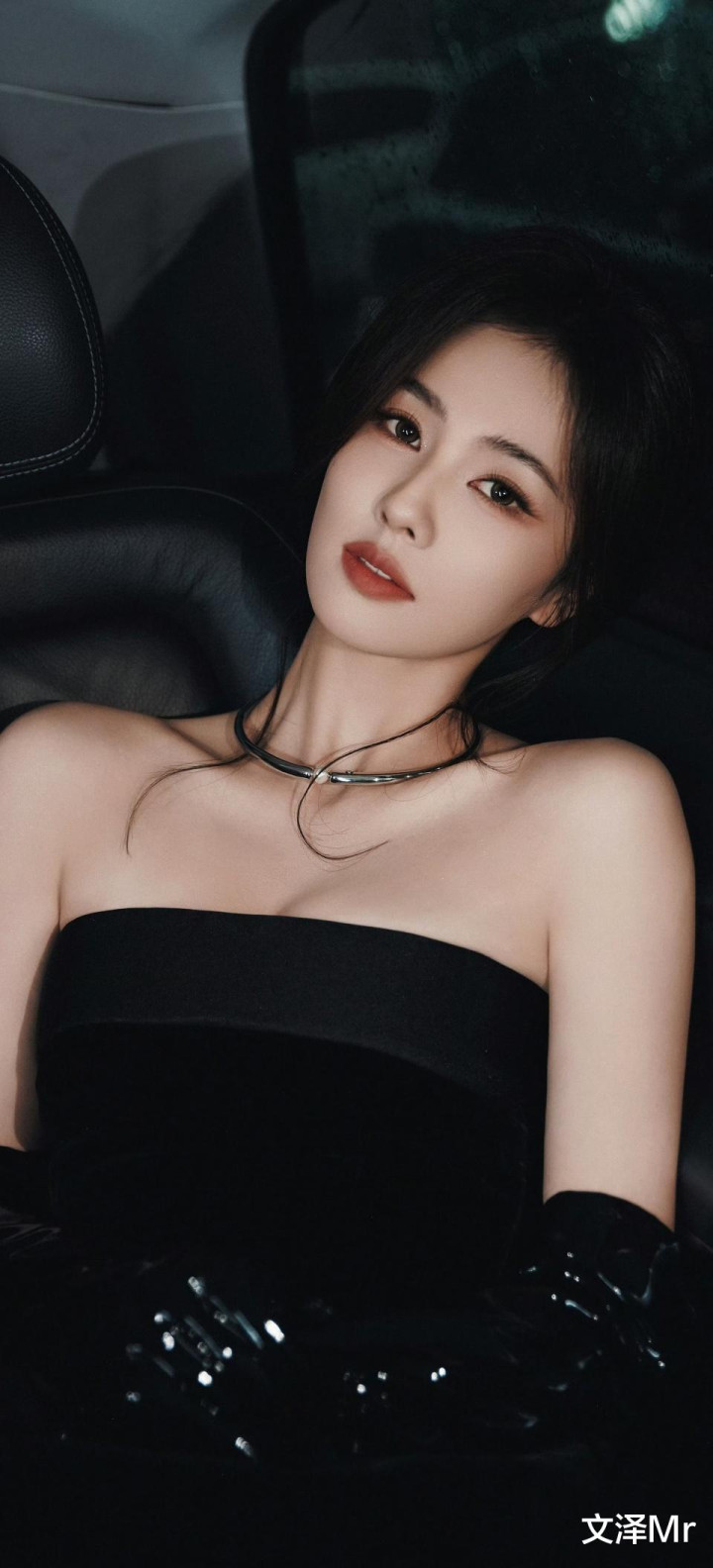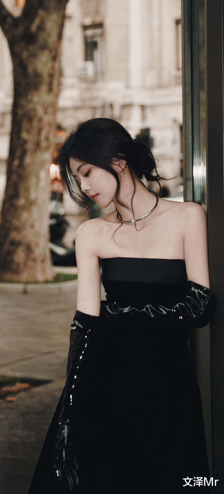 这张照片展现了她作为演员的肢体表现力。侧身倚靠墙面的姿态,让黑色抹胸裙的剪裁优势尽显。细看会发现她连指尖的弧度都经过精心设计——这种对细节的把控,与她打磨角色时的专注如出一辙。据说拍摄当天连续工作10小时,她依然保持最佳状态,专业素养可见一斑。