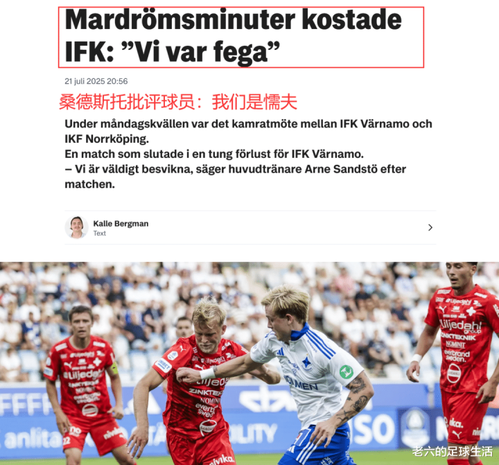 上场与北雪平的比赛结束后,主教练桑德斯托赛后非常失望,还批评球员称他们是懦夫。