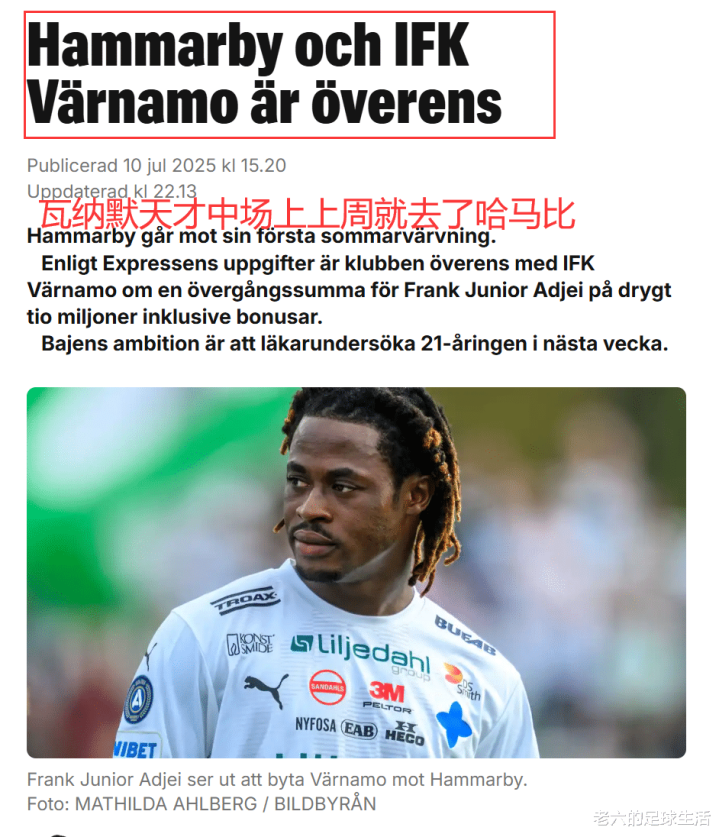 另一名天才中场阿德耶也是上上周就转会到本场对手哈马比的手里,现在球队几乎没有中场球员了。