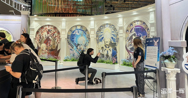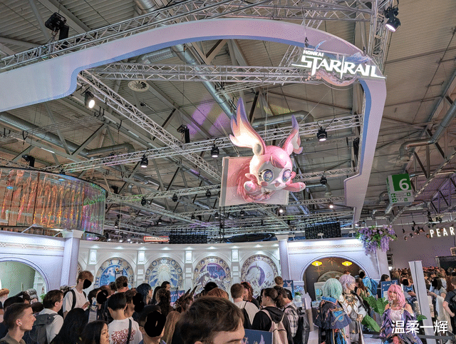 其中《崩坏:星穹铁道》展台以翁法罗斯为主题,并把刻律德菈、白厄、海瑟音、遐蝶、万敌等黄金裔的壁画搬到了现场,头顶上还有一个超大的迷迷,这样的布置吸引了现场大量游客的注意,海外玩家更是纷纷前往现场打卡拍照。
