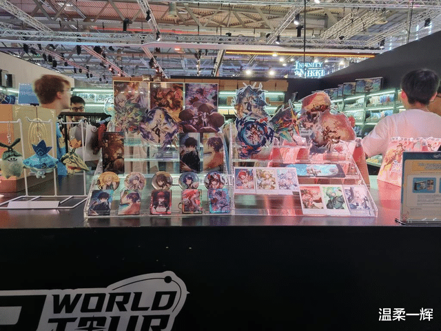 今年的米哈游没在科隆展上放播片广告,相反他们把线下打造了一个周边专卖场,吸引了无数游客前去购买各种周边。
