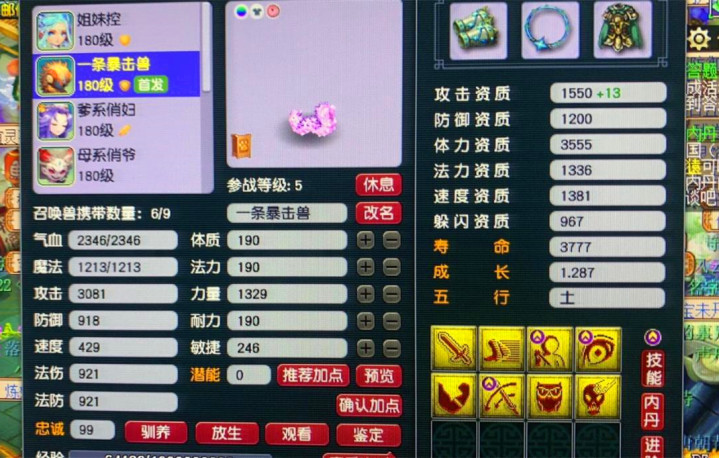 上面这位玩家现在有这么一只八技能全红的海毛虫,上面的这只海毛虫是三赐福的,这只海毛虫从技能来看就是全力加点在抓鬼任务中使用的,因为它拥有着高级感知和高级驱鬼,高级驱鬼面对鬼王吸血鬼造型的时候可以造成双倍伤害,而高于感知都是在天降星辰玩法中针对老鼠的时候使用的。上面的这只召唤兽在运气比较好的情况下,一套连击就能够带走主怪。而且物理攻击速度比较快,可以称之为五开最想要的召唤兽。
