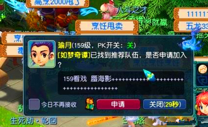 如果各位玩家拥有龙凰、鲲等类型的祥瑞,在养成之后这些祥瑞是会替各位玩家寻找一些队伍的,就比如上面这位玩家现在所碰到的这种情况。上面的这位玩家现在就被鲲提醒要加入该队伍去刷任务了。