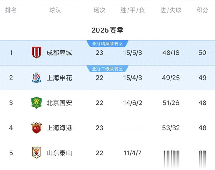 2025赛季中超联赛第23轮比赛继续进行,在备受瞩目的强强对话中,排名第四的成都蓉城4-1大胜上海海港,积分达到50分,暂时反超原领头羊上海申花1分,领先北京国安、上海海港2分,位居积分榜头名位置,这也是BIG4形成争冠集团以来,成都蓉城首次登顶积分榜。