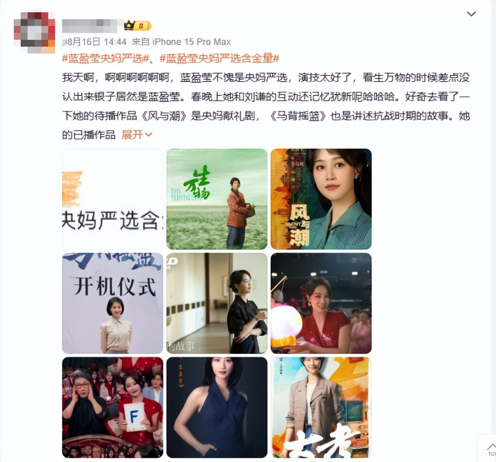 这种种表现都让蓝盈莹在此后的演艺道路上有了更多的选择。