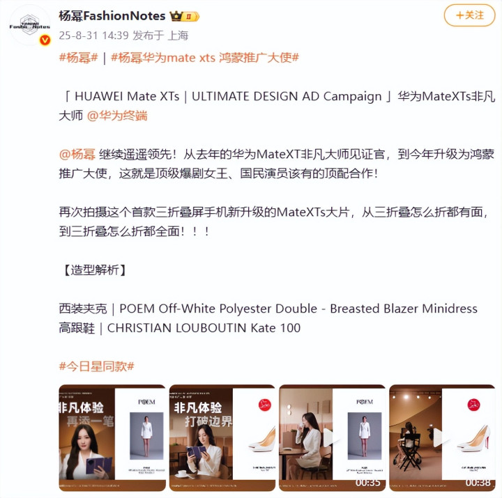 节目之后,杨幂收获代言无数,还携手华为再现“三折叠”名梗。