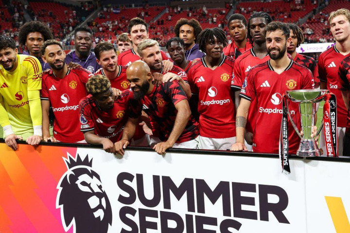 周日晚上,曼联在梅赛德斯-奔驰体育场捧起了一座奖杯,他们在赴美之旅中击败了西汉姆联和伯恩茅斯,与埃弗顿战平。