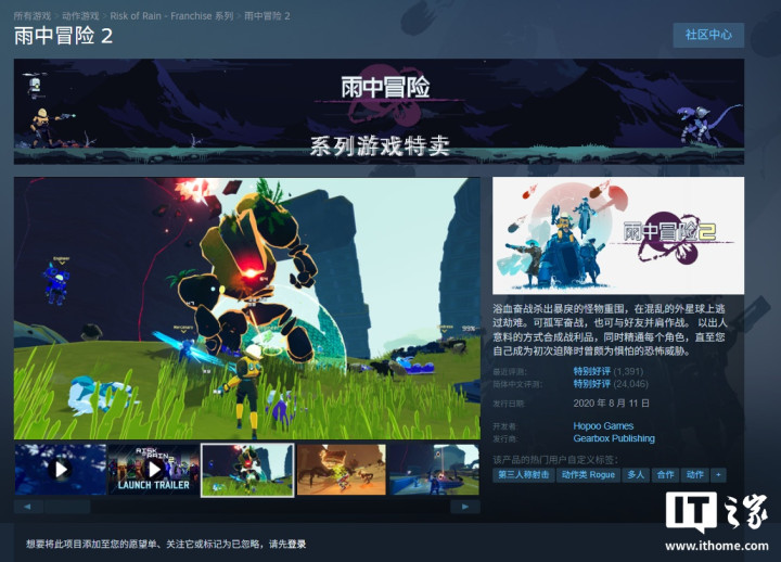 《雨中冒险2》:原价80元,现3.3折促销,26.4元。