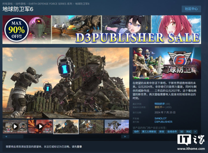 《地球防卫军6》:原价398元,现5折促销,199元。