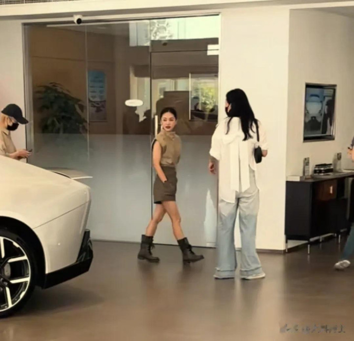 办理完提车手续后,王子文在助理的陪同下离开了销售店,离开时王子文仍旧双手插兜,这似乎也是她的风格气质吧——高冷、酷帅。